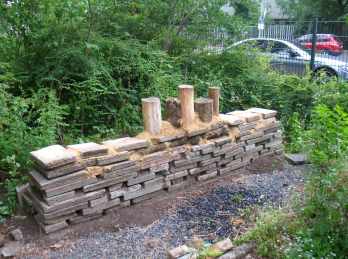 Nach der Auswahl eines sonnigen Plätzchens und Grundsteinlegung im letzten Spätsommer fanden wir erst in diesem Sommer wieder die Zeit, weiter an unserem zweiten Wohnungsprojekt für Wildbienen zu arbeiten,