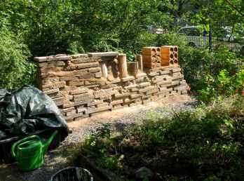 Veröffentlicht: August 30, 2019 Abgelegt unter: Vögel, Insekten und andere Wesen | Tags: Artenvielfalt, Ökologie, Biodiversität, Garten in der Stadt, Gemeinschaftsgarten wachsenlassen, Nachhaltigkeit, Stadtgarten, Urbanes Gärtnern, Wachsenlassen, Wildbienen im Garten Hinterlasse einen KommentarAuch bei uns im Gemeinschaftsgarten dauern die Baustellen häufig länger als erwartet, daher freuen wir uns nun sehr, unsere schon im letzten Jahr begonnene Trockenmauer für Insekten nun eröffnet zu haben!