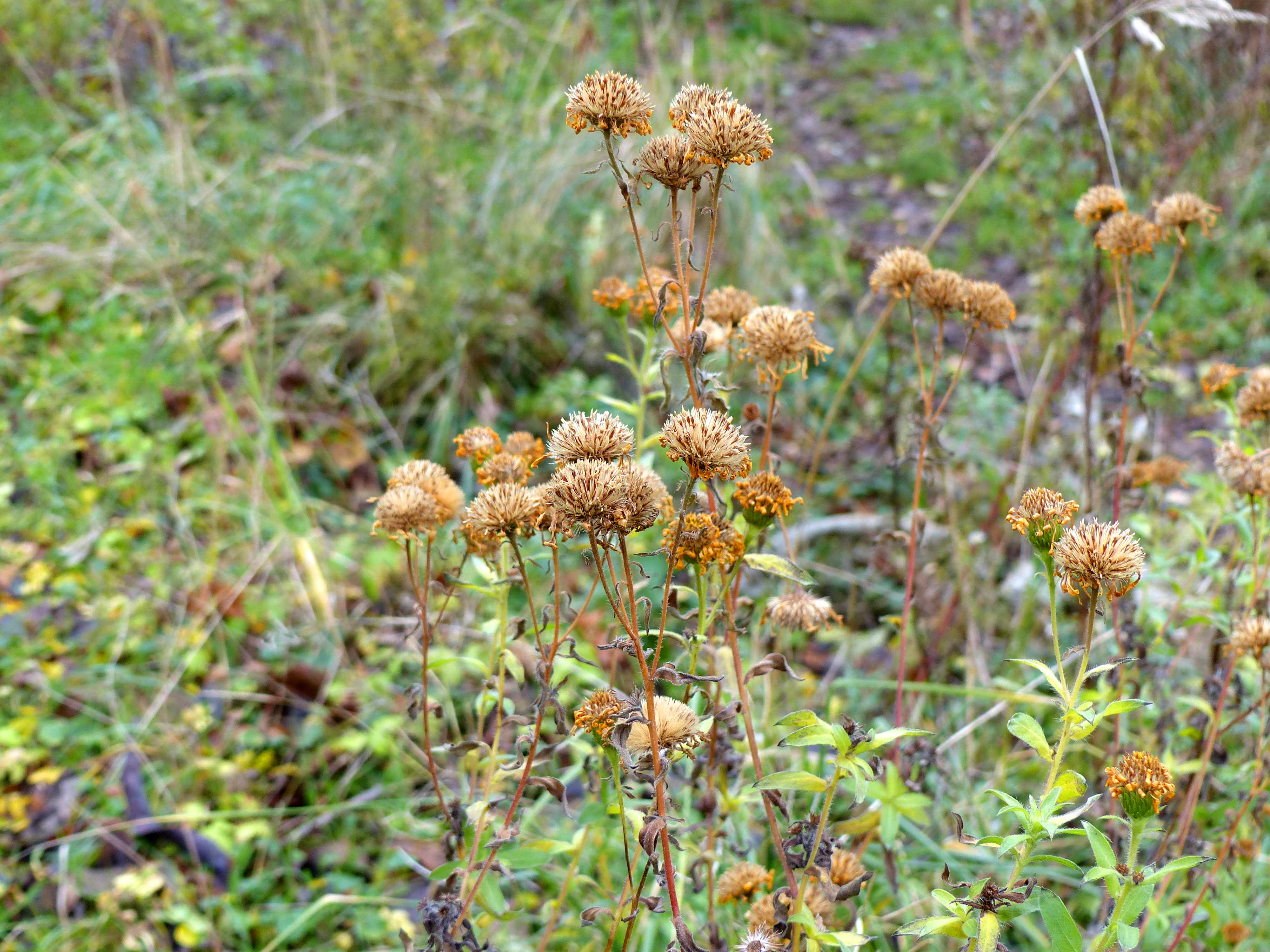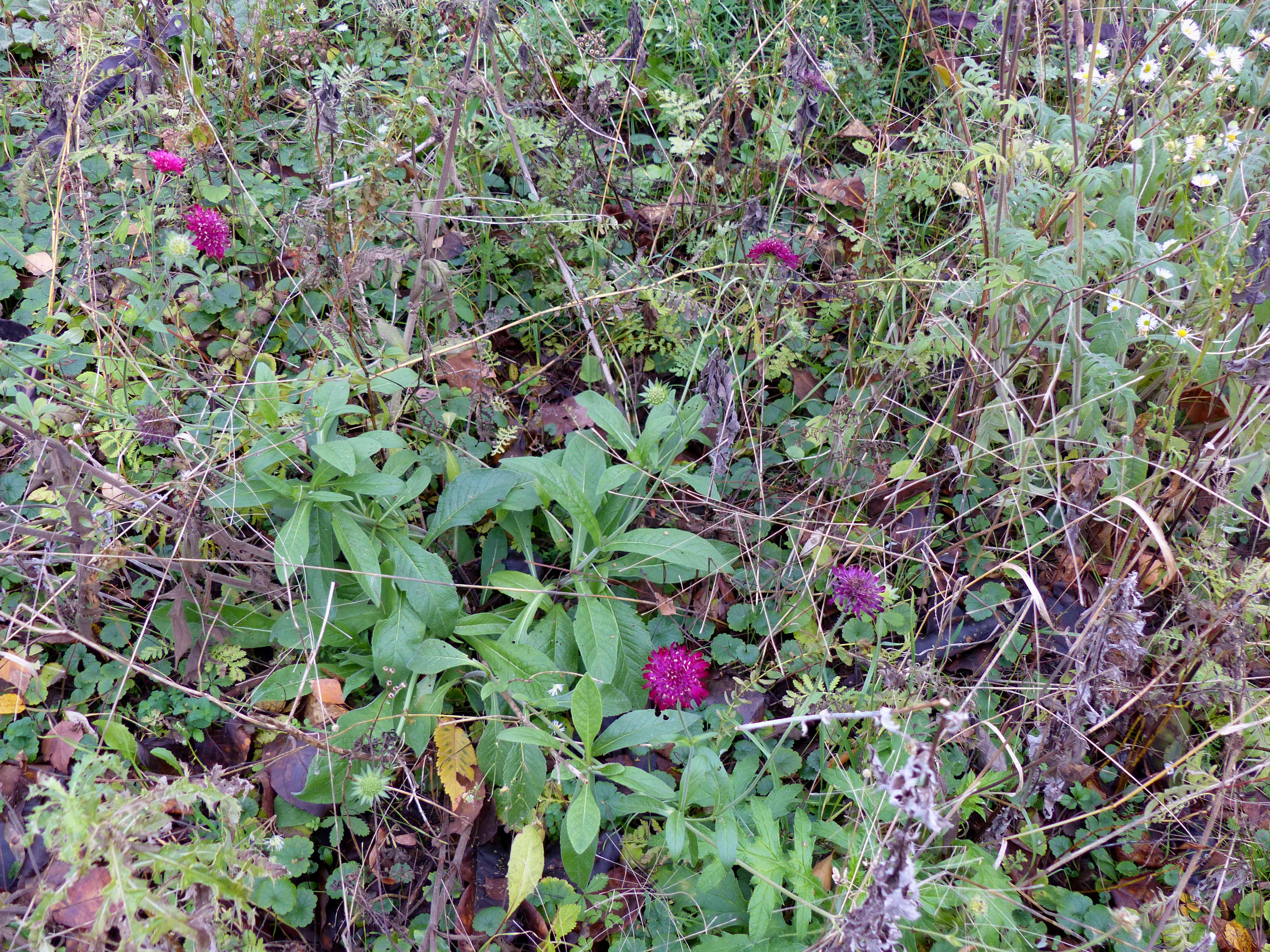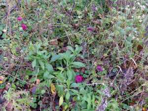 Einige der im letzten Jahr neu gepflanzten Wildblumen zeigen, dass sie gut angewachsen sind und werden voller Freude auf künftige Blütenpracht und Nahrung für Insekten begrüßt. Wie schön, das wuchsfreudige Leben im Wintergrau der Stadt zu finden.