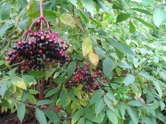 Zumindest rund um und im Familiengarten in Tiergarten-Süd war die Ausbeute leider kärglich. Es ist ja bekannt, dass die einzelnen Dolden an einem Strauch zu unterschiedlichen Zeiten reifen, aber wir fanden leider meist nur Dolden, bei denen die einzelnen Beeren nicht gleichzeitig reif geworden waren. So sahen leider die noch besseren Varianten aus: