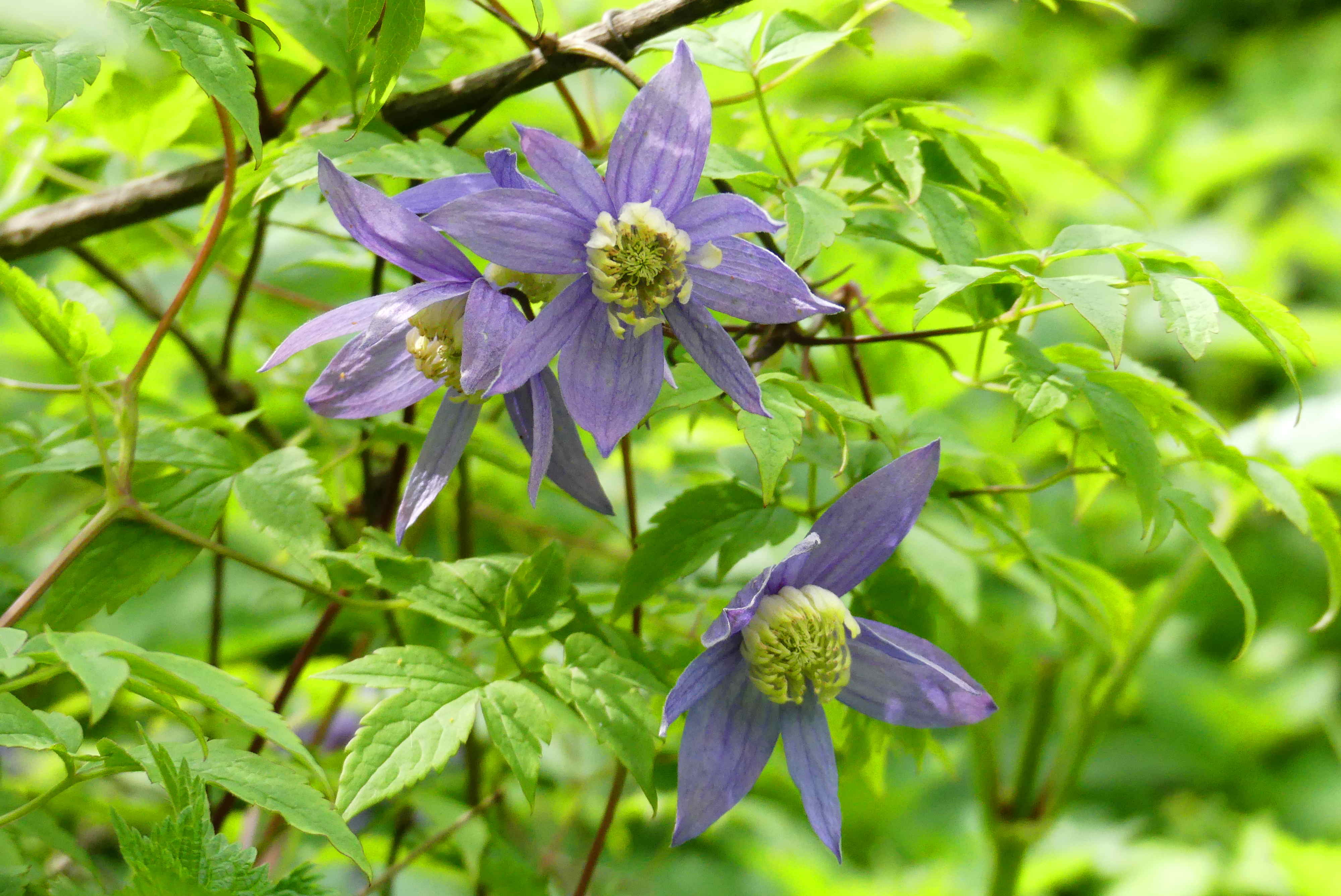 Neu hinzugekommen ist die Clematis Alpina, eine robuste frühblühende Clematissorte, die ihre hübschen violettblauen Blüten seit Jahren in unserem Garten zuverlässig ab April zeigt und im Spätsommer meist noch eimal durch eine zweite Blüte überrascht.