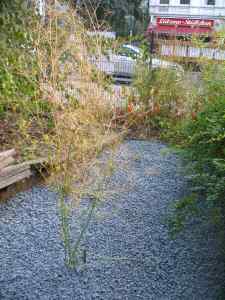 Im Herbst 2019 hatten wir die grundlegenden Arbeiten in diesem Bereich dann endlich abgeschlossen und zu unserer Freude begannen viele Pflanzen recht schnell, sich diesen Lebensraum zu erobern. Mittlerweile gedeihen einige Sedum-Arten, Tagetes, Vergissmeinnicht, Eisenkraut, gelber Hornklee, Mariendistel, Amaranth und einiges mehr im Kiesbeet, wir sind gespannt, was die nächsten Jahre noch so passieren wird. Und Giessen ist so gut wie gar nicht mehr notwendig.