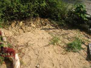 Hier, hoffen wir, wird sich ein kleiner Lebensraum für Wildbienen etablieren, die im Boden nisten.