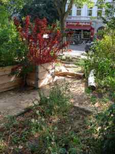 Im Spätsommer 2019 wurden die Bauarbeiten am neu entstandenen Kiez Zentrum Villa Lützow fertig gestellt und der Bauzaun, der uns für Jahre vom sonnigsten Bereich unseres Garten getrennt hatte, fiel!