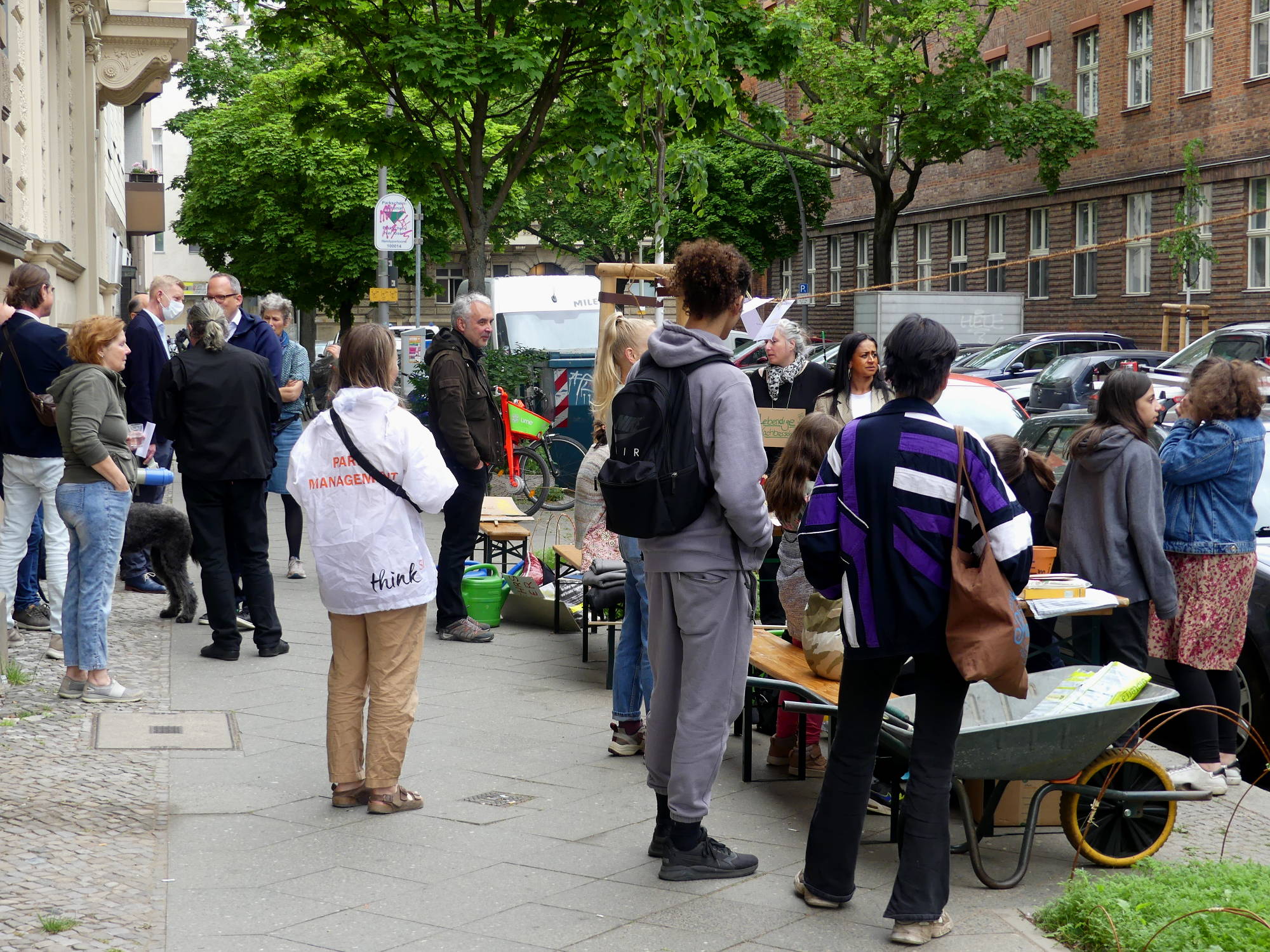 Die Anwohner*innen Initiative in der nördlichen Steinmetzstraße setzt sich mit nachbarschaftlichen Aktivitäten und Aktionstagen für eine lebendige Nachbarschaft und eine Verkehrsberuhigung ihrer Straße ein.
