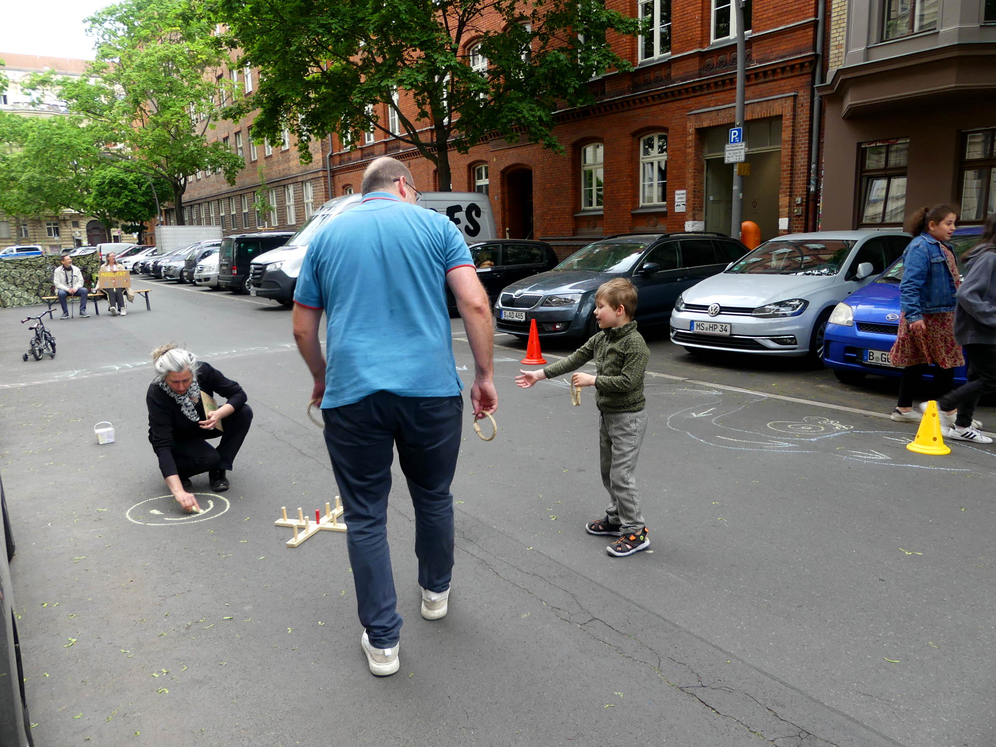Die Straße wurde zum Treffpunkt für die Menschen, die hier wohnen, es wurde gemalt und gespielt und sich über Wünsche und Ziele zu einer lebenswerten Staße ausgetauscht. Es hat Spaß gemacht, miteinander ins Gespräch zu kommen und ja, mehr Spaß brauchen wir auf jeden Fall in einer lebendigen Nachbarschaft!