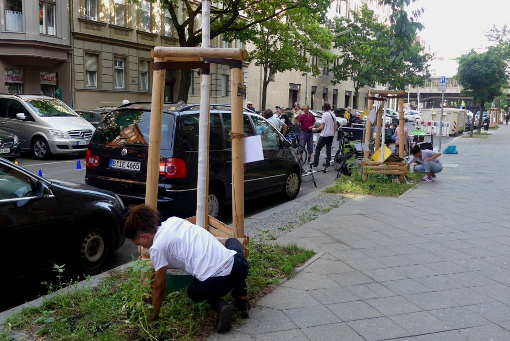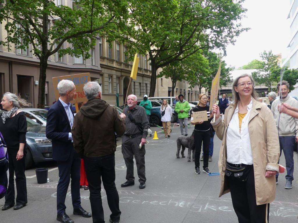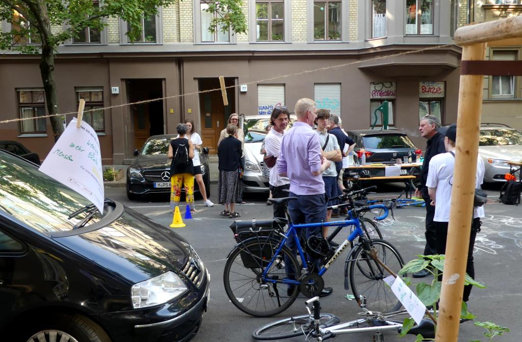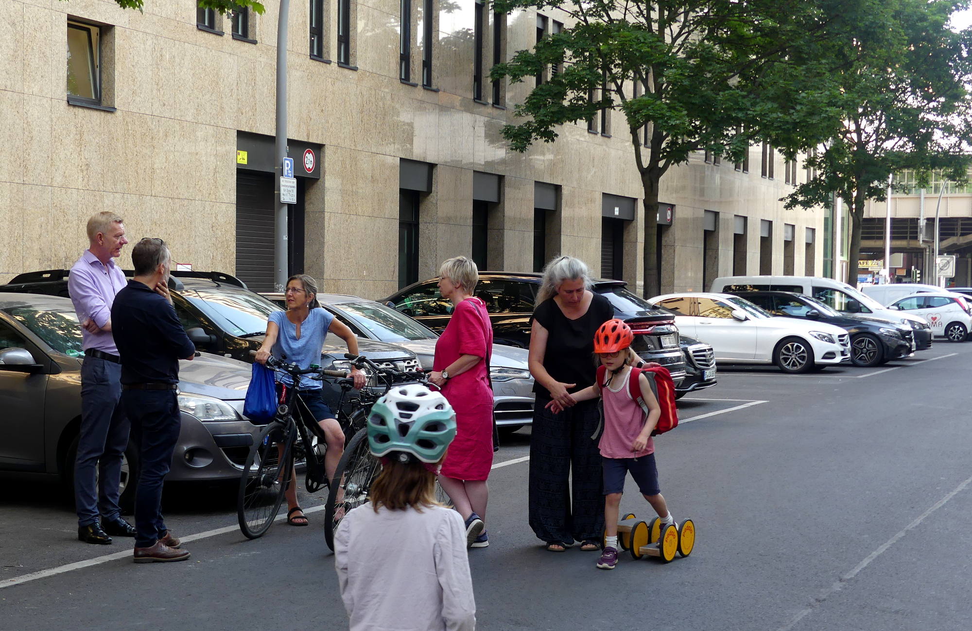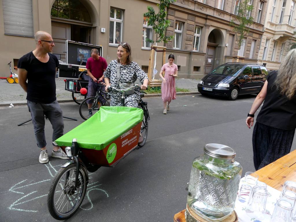 Unterschiedliche Akteur*innen zum Thema ‘autofreie Mobilität in der Stadt’ hatten sich an diesem Donnerstag im Juni auf der nördlichen Steinmetzstraße zusammengefunden.