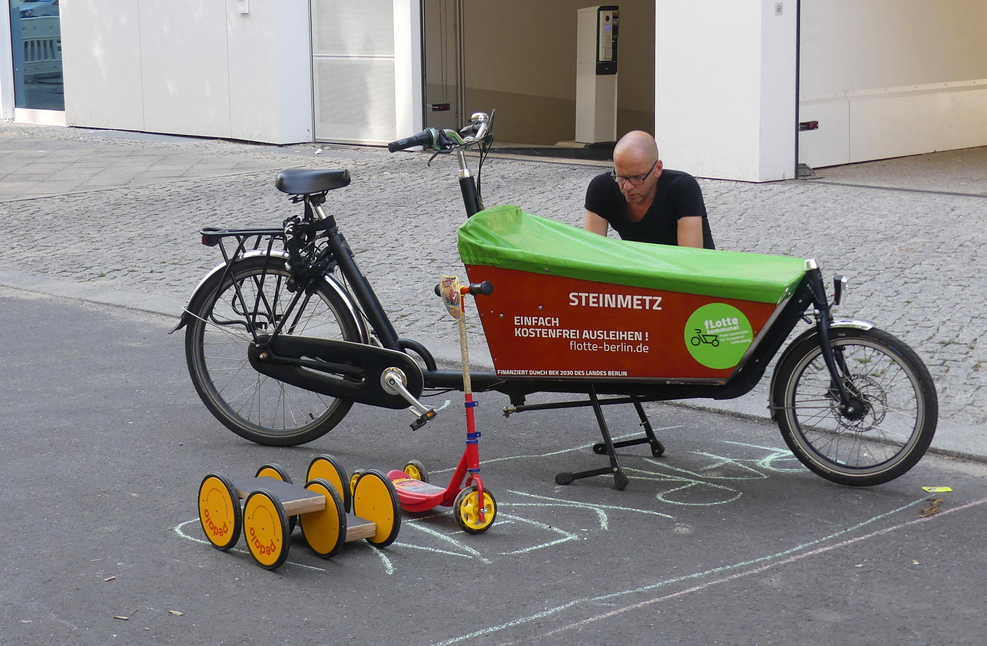 In Ruhe konnte bei viel Platz zum Beispiel die Flotte Lotte ausprobiert werden, was sicherlich einigen die Scheu genommen hat, sich solch ein Lastenrad kostenfrei auszuleihen.