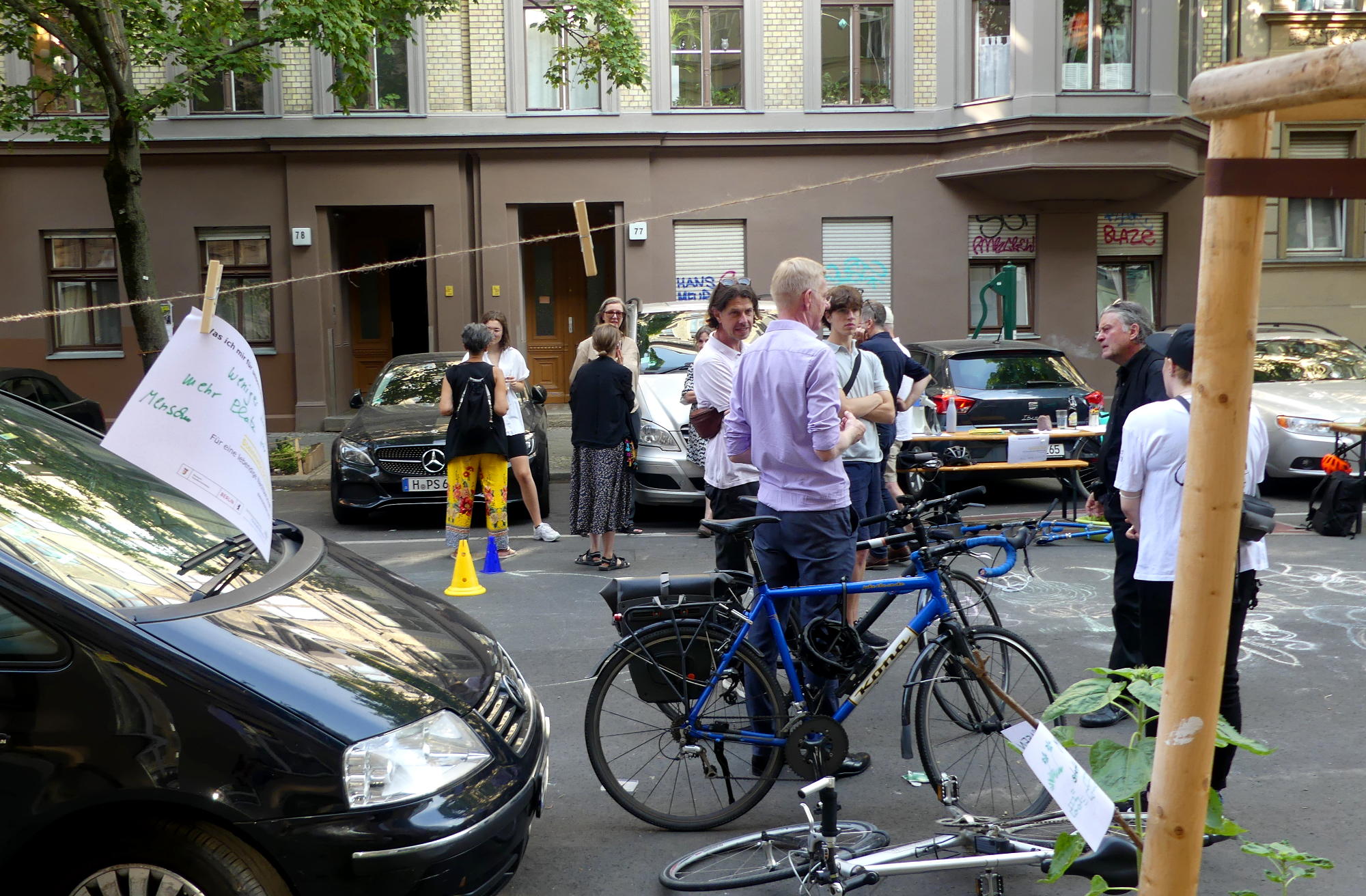 Neben der Demonstration zur Verkehrsberuhigung gab es Raum und Ruhe, um sich zu treffen und kennenzulernen und um gemeinsam aktiv zu werden.