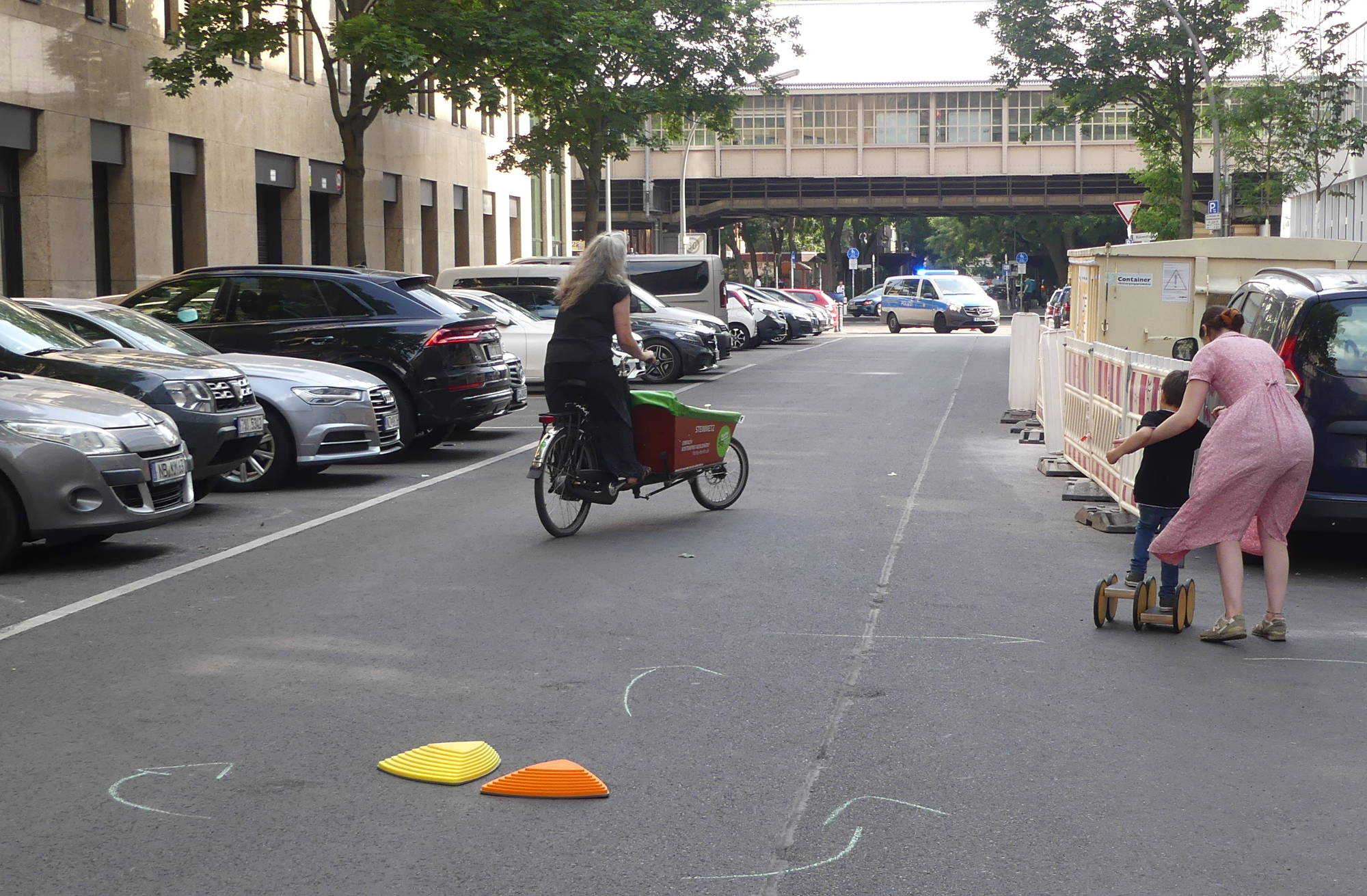 Auch wurde die Straße immer beliebter als im wahrsten Sinne des Wortes schnelle Abkürzung zwischen Goeben- und Kürfürstenstraße – so lässt sich die meist dauergestaute Potsdamer Straße umfahren – und somit gefährlich für kleine und große Anwohner*innen.