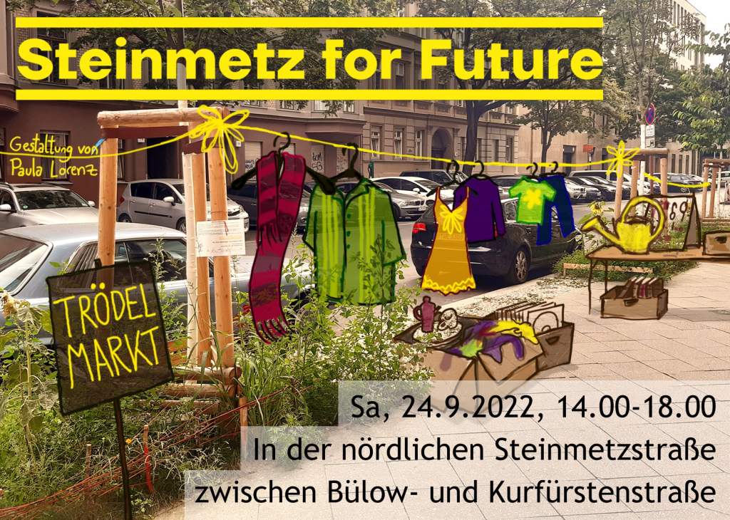 Am 24.9.2022, in der Zeit von 14.00 – 18.00 Uhr möchten wir in der nördlichen Steinmetzstraße einen Trödelmarkt veranstalten und freuen uns über zahlreiche Mittrödler*innen!