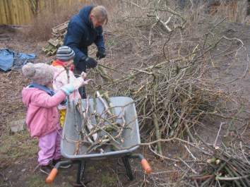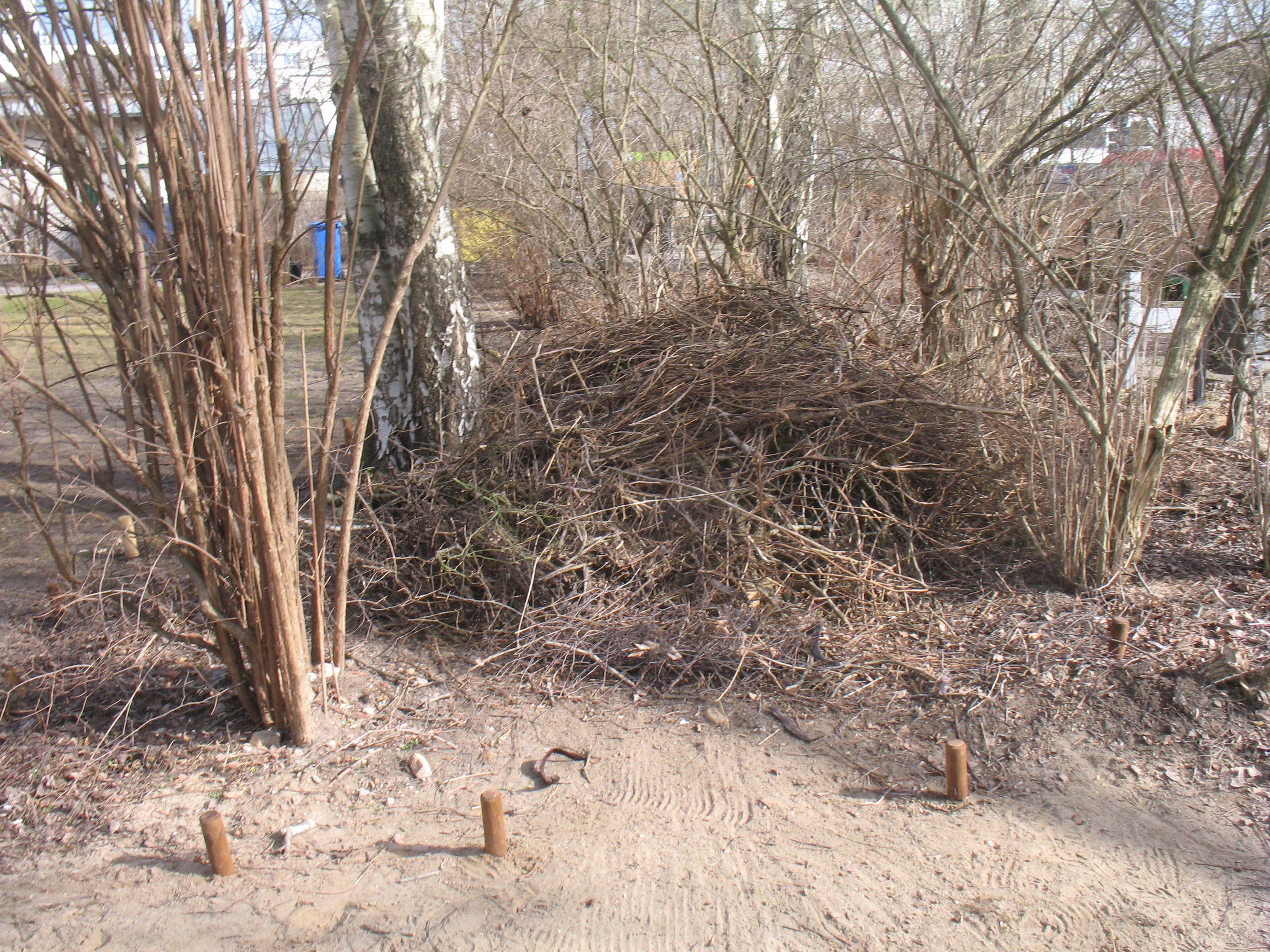 Danach machten wir uns daran, einen Reisighaufen anzulegen, ein idealer Aufenthaltsort für Spinnen, Insekten, Spitzmäuse, einige Vogelarten und mit etwas Glück wird sich dort auch ein Igel einfinden.