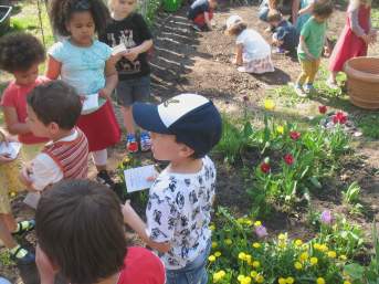 Ebenfalls ein buntes blühendes Blumenbeet ensteht durch die Kindergartenkinder der Gruppe Cocorico & Co e.V., die schon seit Jahren in unserem Garten mitmachen.