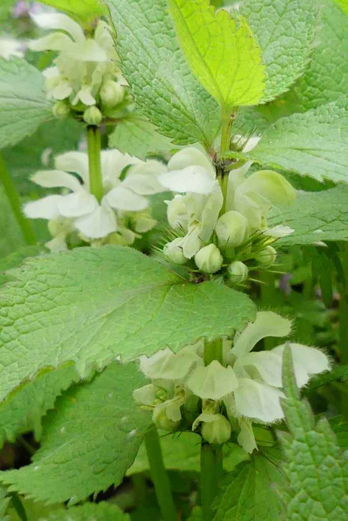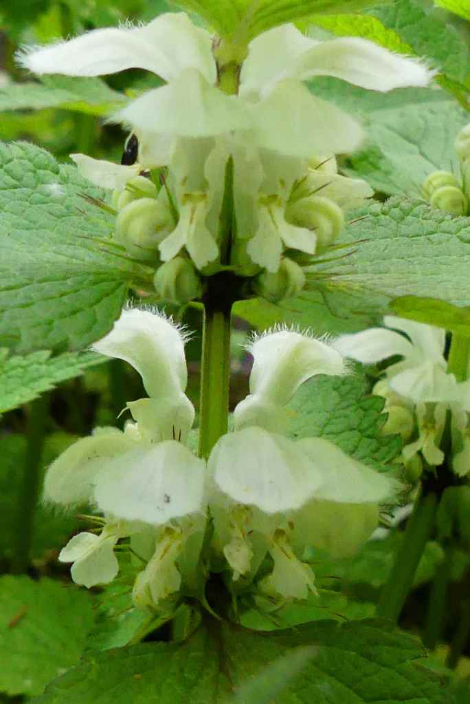 Die weiße Taubnessel, Lamium album, eine vielseitig einsetzbare Heilpflanze, deren jungen Triebe auch schmackhaft und gesund im Wildsalat sind, verfügt über wunderschöne Lippenblüten, die von unterschiedlichsten Bienenarten heiß geliebt werden.