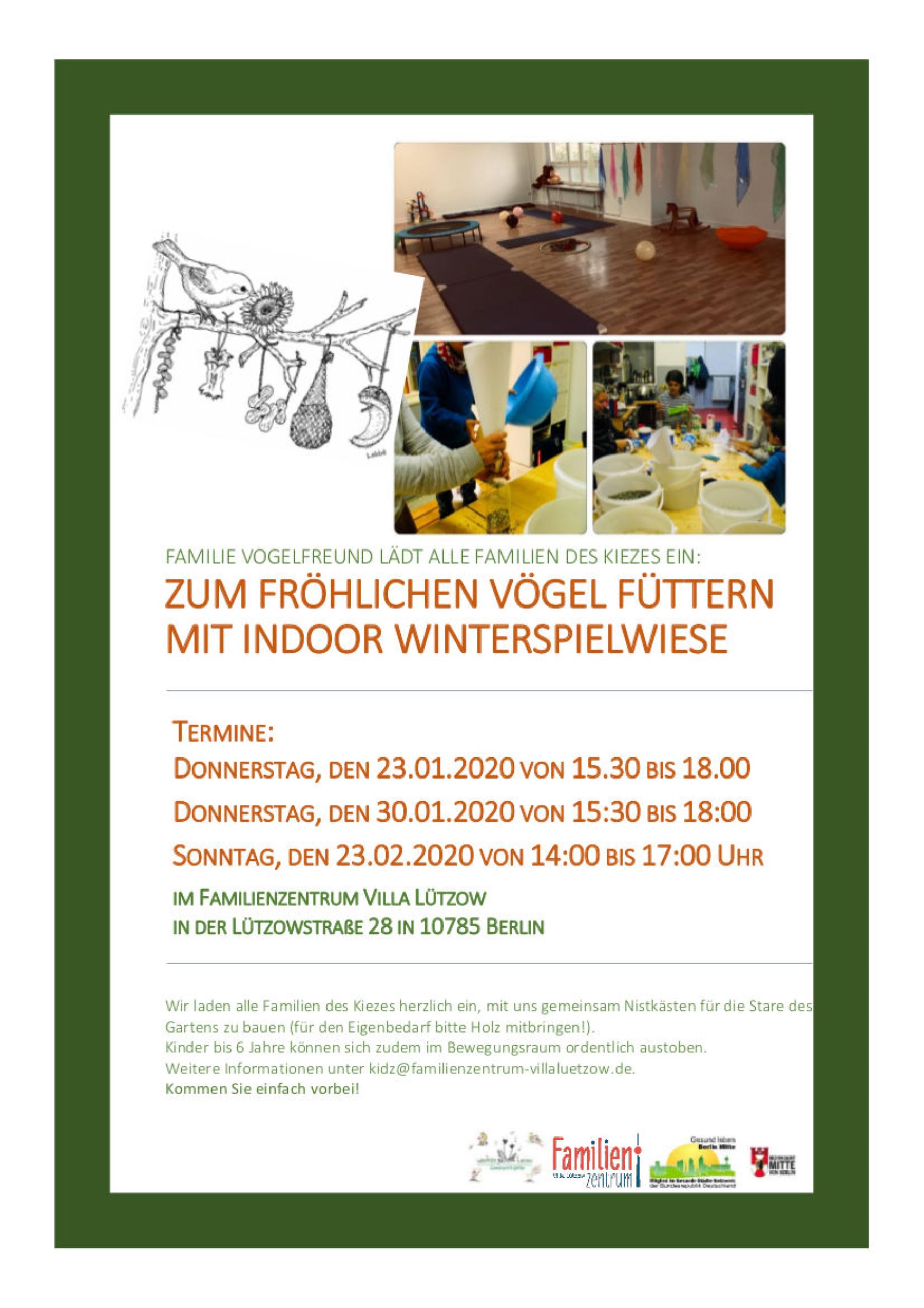 Veröffentlicht: Dezember 6, 2019 Abgelegt unter: Gemeinschaftsgarten | Tags: Artenvielfalt, Familienzentrum Villa Lützow, gemeinsam selbermachen, Gemeinschaftsgarten wachsenlassen, Urbanes Gärtnern, Wachsenlassen, Werken mit Kindern Hinterlasse einen Kommentarzum fröhlichen Vögel füttern mit Indoor Winterspielwiese