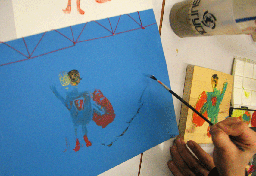 In einem weiteren Workshop in den Herbstferien 2016 gestalteten die Kinder ein großes Wandbild über das im Sommer Erlebte und präsentierten dieses und andere Arbeiten in einer kleinen Werkschau am 21.10.2016.