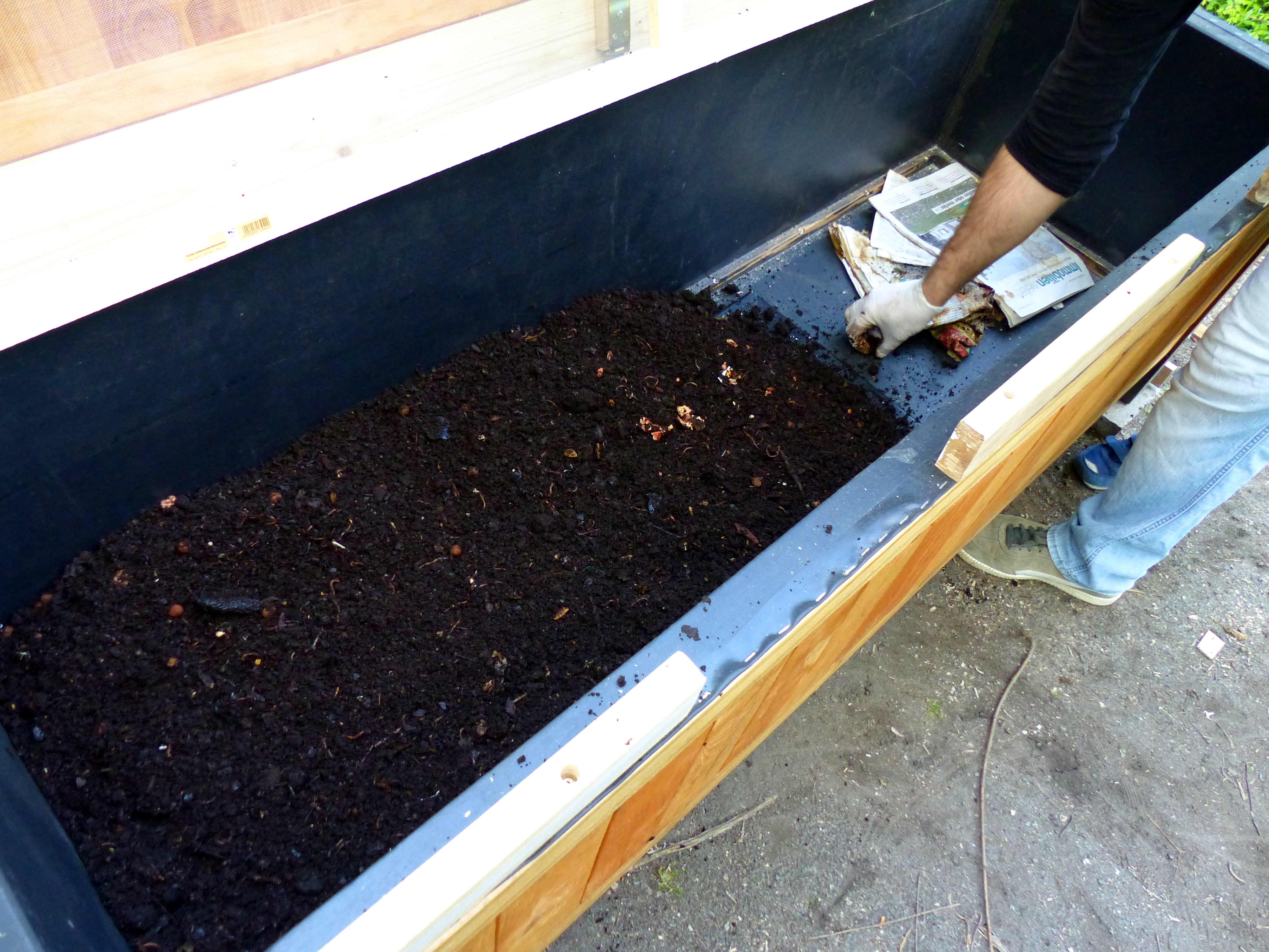 Veröffentlicht: Mai 29, 2020 Abgelegt unter: Vögel, Insekten und andere Wesen | Tags: Artenvielfalt, Ökologie, Biodiversität, Gemeinschaftsgarten wachsenlassen, nachhaltiges Wirtschaften, Wachsenlassen, Wurmkompost Ein KommentarDie Idee war schon lange in der Welt, nun konnte sie endlich realisiert werden: in seiner knapp bemessenen Freizeit hat Arben aus dem Team wachsenlassen geschraubt, gebohrt und gezimmert, damit der sehnlichst gewünschte Wurmkomposter und damit die kleinen Tiere und mit ihnen ‚das scharze Gold‘ in unseren Garten einziehen konnte.